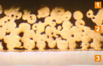 该产品以不锈钢为基体,中间烧结球形青铜层,表面轧制聚四氟乙烯和铅的混合物。它具有较好的自润滑、耐磨损、摩擦系数低、耐腐蚀等性能。产品广泛应用于印染机械、化工机械、海洋工业耐腐蚀部位等。